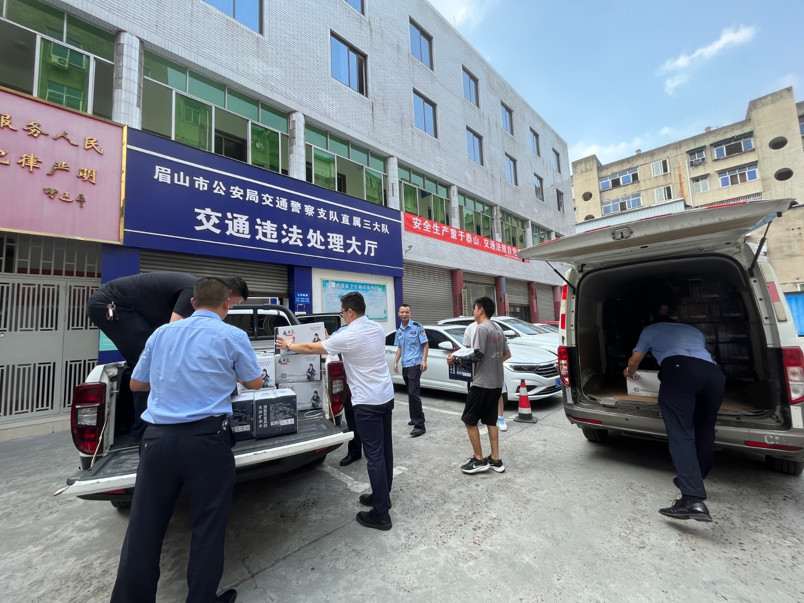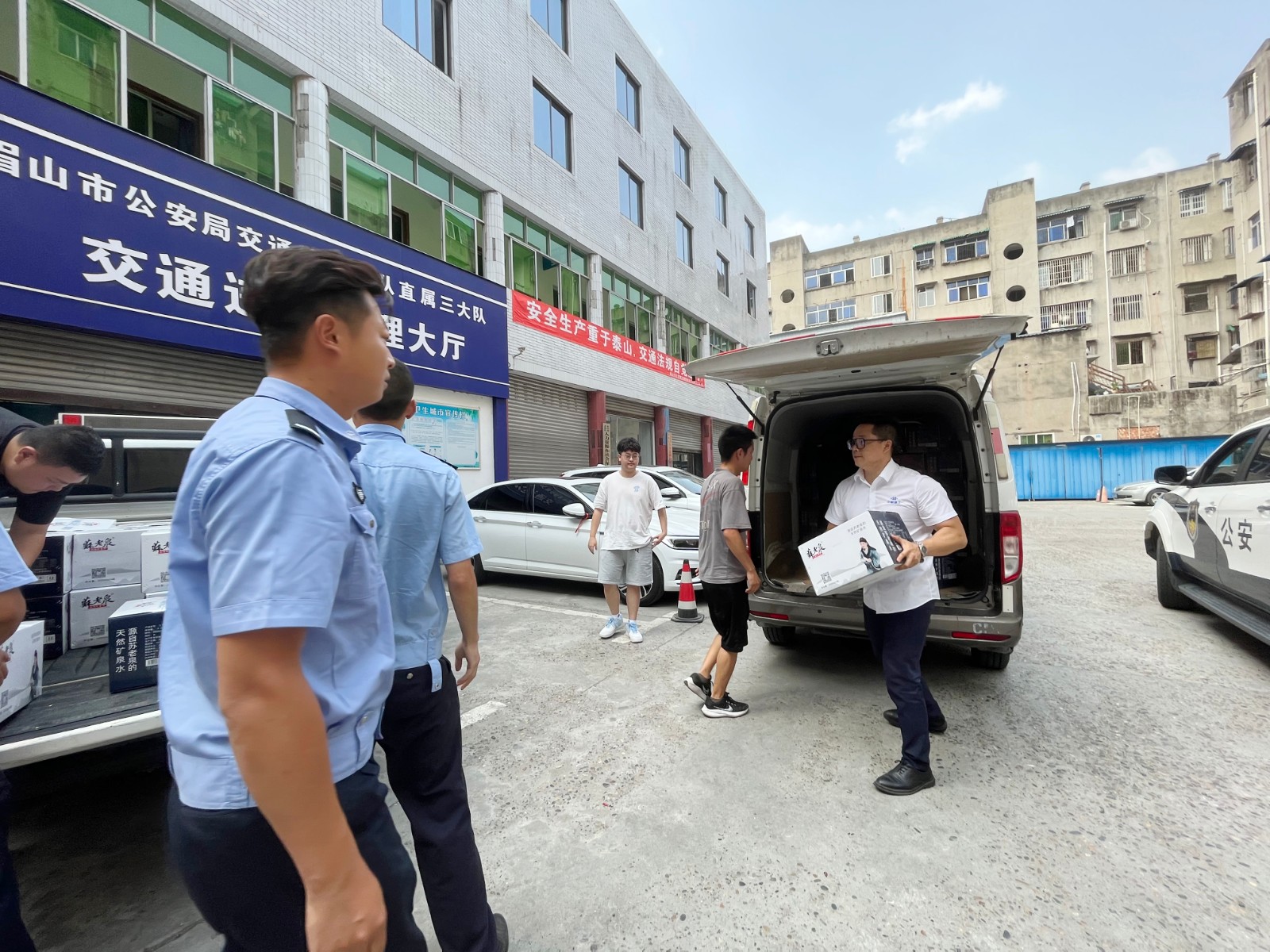 7月14日,中桓建工集團副董事長魏琴帶隊前往眉山市公安局交通警察支隊直屬三大隊開展“夏送清涼”慰問活動,將藿香正氣液及上千瓶水送至交警三大隊。