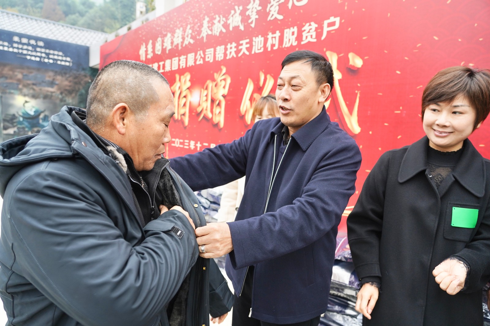為回報社會,履行社會責任,助力鄉村振興,幫扶脫貧戶盡快走上富裕道路,12月5日,在各級政府部門的協調下,中桓建工集團有限公司董事長魏一平、總經理李歡走進青神縣天池村開展愛心捐贈活動。